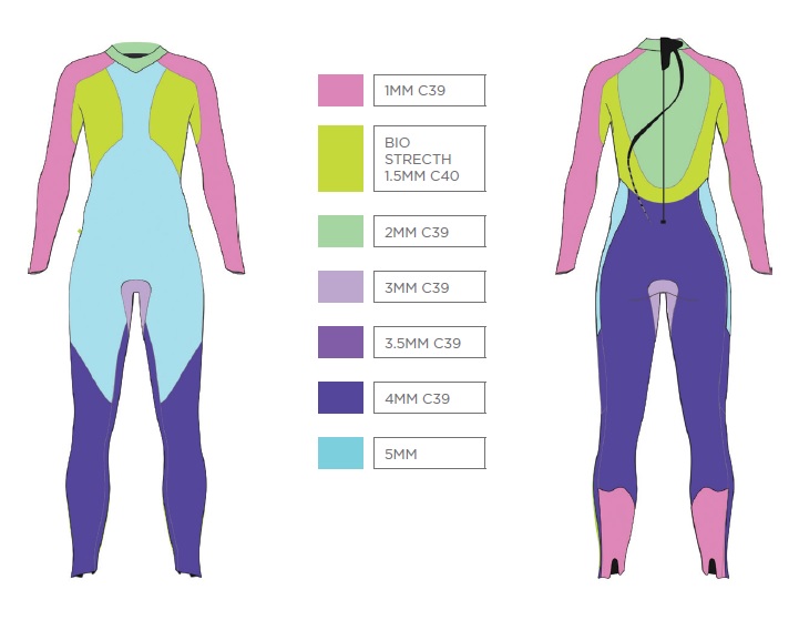 – Bio Stretch Zone: Strategicky rozmístěné 1,5mm Yamamoto 40 panely (podpaží a na spodní části zad) dovolují maximální rozsah pohybu