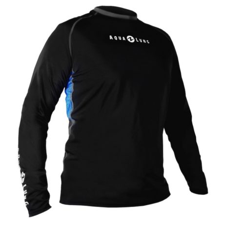 Vynikající tričko pro plavání, plážové a vodní aktivity, vyrobené z moderních materiálů. Chrání před UV zářením. Tato exkluzivní lehká, pružná směs materiálů Nylon/Spandex poskytuje vyjímečné vlastnosti: Tato trička dýchají, odpuzují vodu (odvádějí vlhkost pryč od těla), mají antibakteriální ošetření zabraňující zápachu, velmi rychle schnou a jsou lehká a skladná. Necestujte bez něj za potápěním nebo šnorchlováním! Ideální též jako spodní vrstva pod běžný nebo suchý oblek, či jako ochrana před sluncem nebo prochladnutím při šnorchlování.