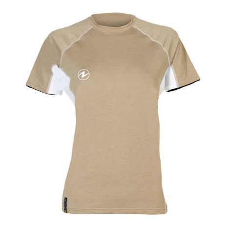 – Mírně zvýšený výstřih poskytuje ochranu před sluncem při aktivitách na hladině nebo zabraňuje tření kompenzátoru vztlaku o kůži při potápění v teplé vodě a pomáhá udržet teplo, když se používá jako spodní prádlo.