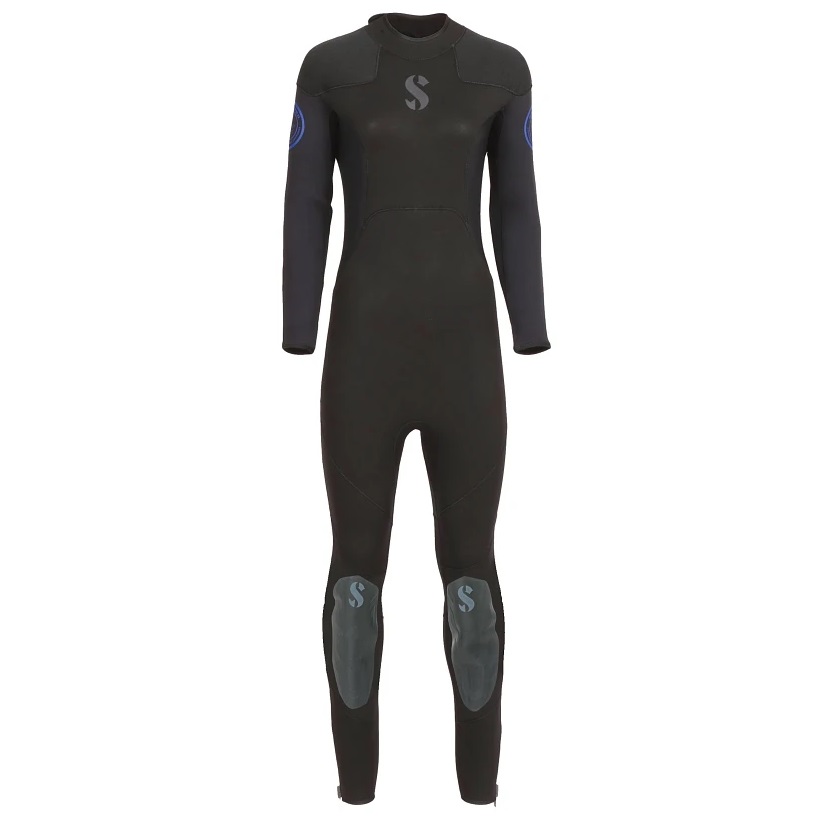 – Odolné chrániče kolen a materiál odolný proti oděru na ramenou a sedací části chrání potápěče a zároveň chrání oblek před oděrkami a škrábanci.