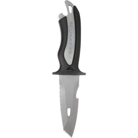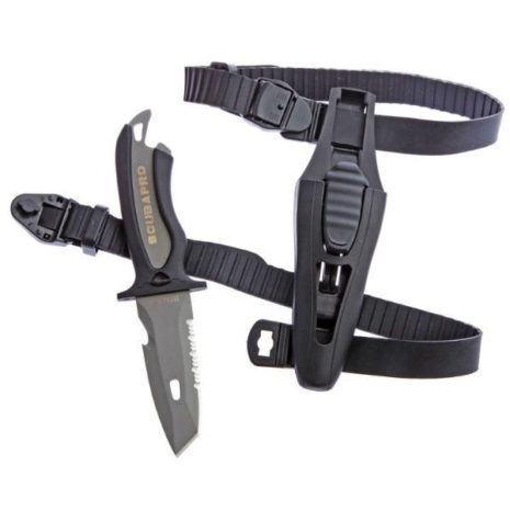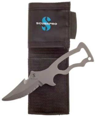 Potápěčský nůž z Titanu s pouzdrem a pásky pro přichycení, čepel délky 8,5 cm. Absolutně bezúdržbový a ve slané vodě nekoroduje.Čepel má hladkou hranu, zoubkovanou hranu, zářez pro rychlé přeříznutí lana a otvírák na lahve. Pouzdro je uzamykatelné s mechanizmem uvolnění jednou rukou.