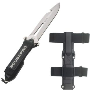 Součástí balení je i Scubapro držák s bungee pro uchycení nože na ruku.