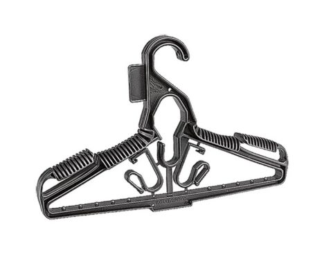 Patentované ramínko umožňující účelné uspořádání vaší výstroje ve velmi malém prostoru.