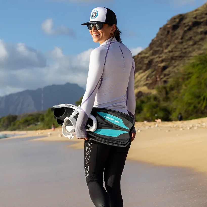 – Tento přiléhavý rashguard je určen k nošení při potápění v tropických vodách nebo jako vrstva pod neopren. Pokud dáváte přednost volnějšímu střihu, zvolte větší velikost.